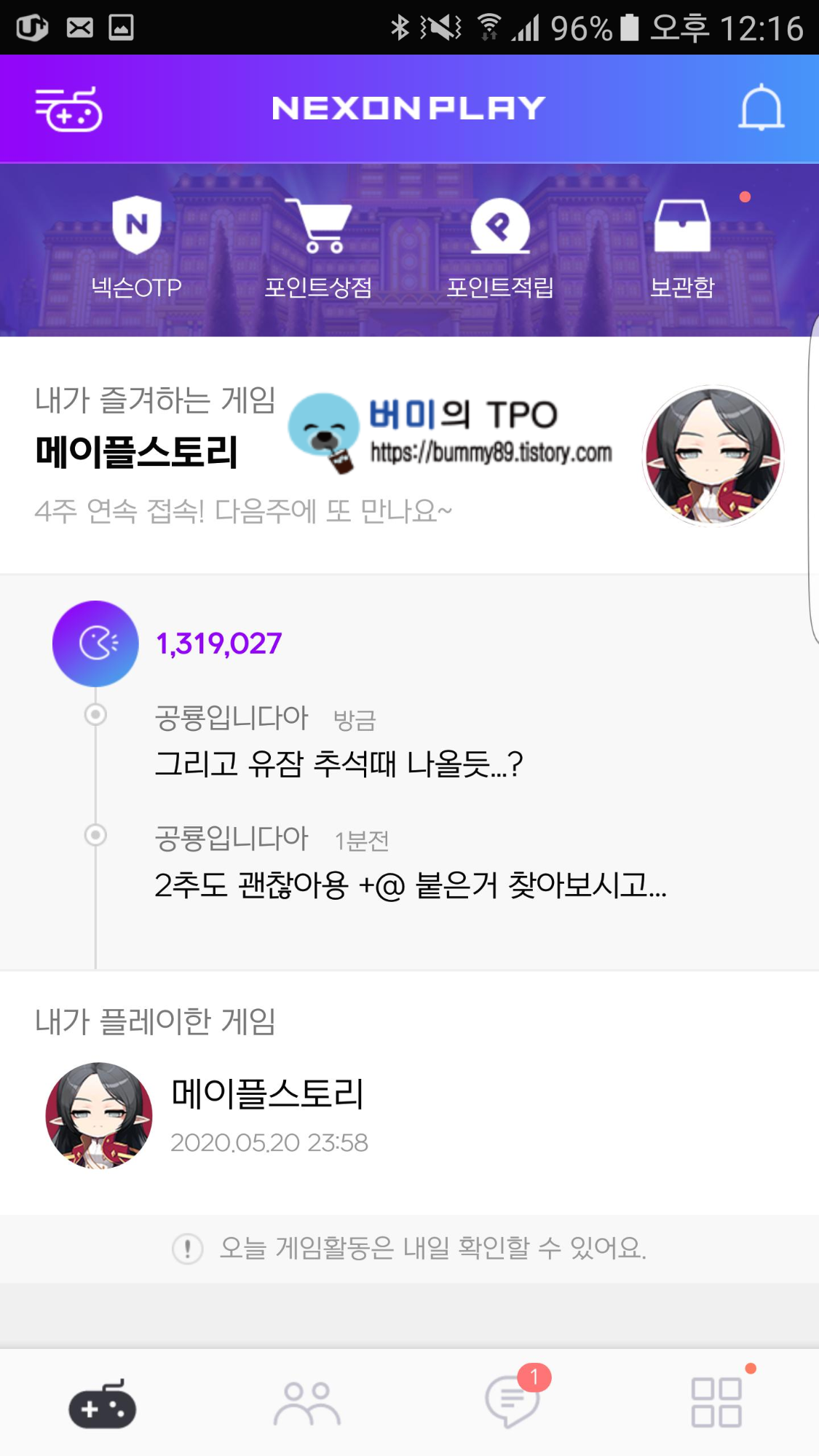 -넥슨 OTP로 메이플스토리 접속