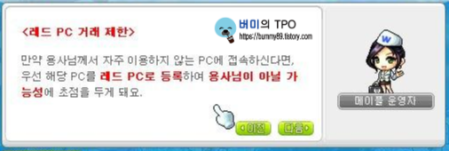 레드 PC는 이용자가 본인이 아닐 가능성에 초점을 두게되어 아이템 판매, 버리기, 교환 등 거래할 수 있는 수단을 이용할수 없게 됩니다.