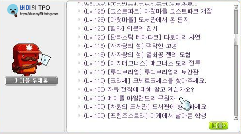 | 메이플 마을이도 빠르게 하기 - bummy89.tistory.com/204 |