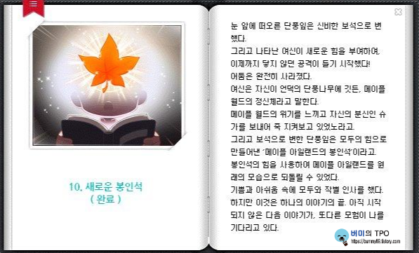d. 메이플 아일랜드가 원래대로 돌아왔습니다. 슈가와 대화해주세요. 이렇게 기나긴 모험의 서의 모든 쳅터가 끝났습니다. 열심히 한 당신 축하받아 마땅합니다. 축하합니다.