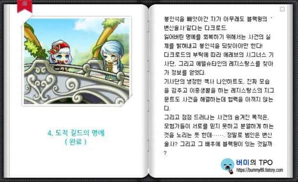모험가 도적 직업군의 모험의 서입니다. 도적 직업군으로는 나이트로드, 섀도어, 듀얼블레이더가 있습니다.