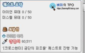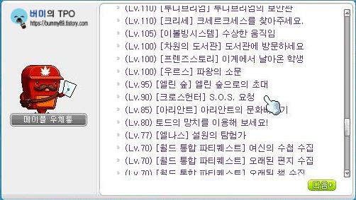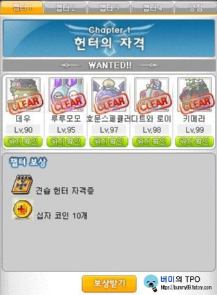메이플 스토리의 초보자 필수 반지인 플래티넘 크로스 링 퀘스트! 크로스헌터 퀘스트 공략을 마칩니다. 크로스헌터 퀘스트의 보상으로 마스터리 상자도 얻을 수 있기 때문에 시간이 남는다면 쳅터 4까지 깨보는 것도 좋습니다. 메이플 스토리 초보자분들의 눈높이에 맞추려고 최대한 쉽게 공략을 해보려고 했는데 어떻게 도움이 됐는지 모르겠네요. 괜찮은 반지도 맞췄으니 이제 열심히 메이플 스토리를 즐겨야겠죠?