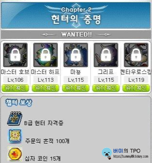 크로스헌터 퀘스트는 총 4개의 쳅터로 이루어져 있습니다. 우리는 플래티넘 크로스 링이 목적이기 때문에 쳅터 2까지만 클리어하면 됩니다.