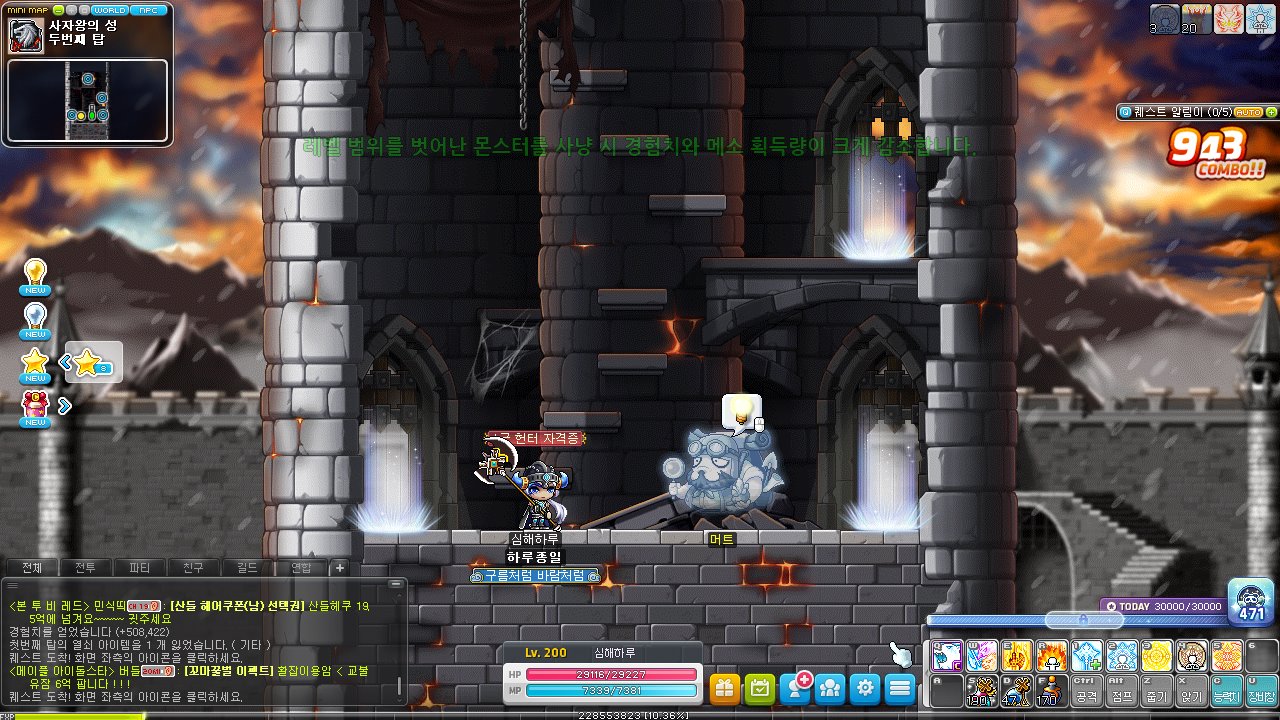 m. 젠에게 열쇠를 받고 두 번째 탑루로 들어가 몬스터를 모두 처치합니다. 몬스터 처치 후 세 번째 탑으로 이동할 수 있습니다. 세 번째 탑에서도 네 번째 탑으로 가려면 탑루의 몬스터를 처치해야 한다고 합니다.