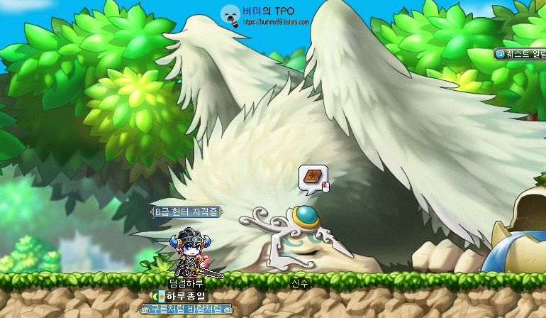 의문을 뒤로하고 신수가 있는 곳에서 왼쪽의 포탈을 타고 빠져나옵니다. 그랬더니 캐릭터 머리 위에 느낌표가 있습니다.