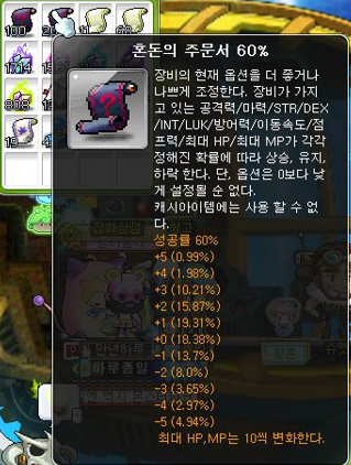 혼돈의 주문서는 해당 장비의 능력을 떨어뜨리거나 올려주는 주문서인데요.