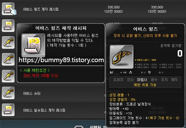 보조무기 상인 네벨이 파는 장비들은 20레벨 실버 장비와 50레벨 골드 장비가 끝이기 때문에 상위 레벨의 장비를 착용하기 위해서는 레시피를 구해서 장비 제작을 해야 합니다.